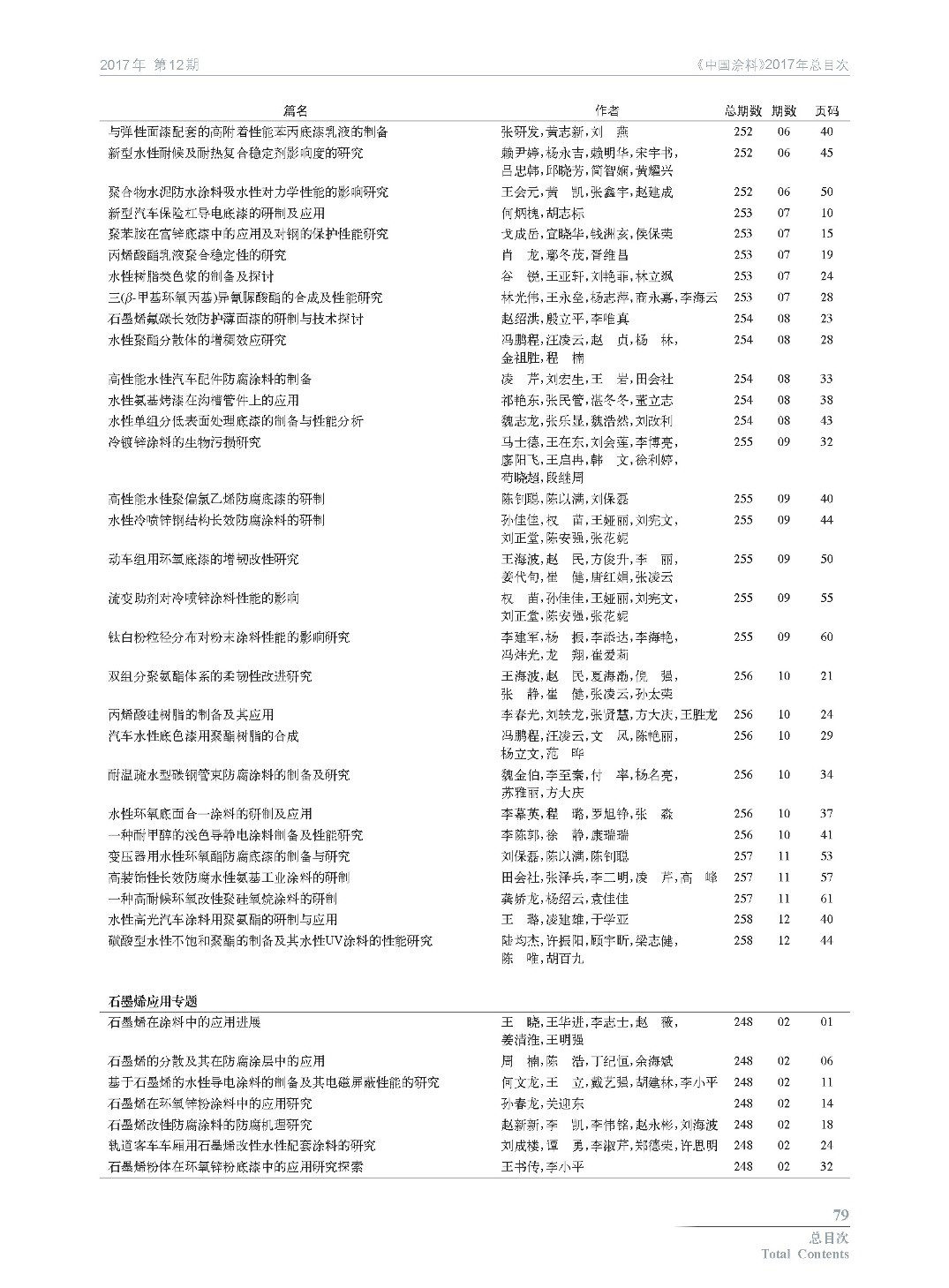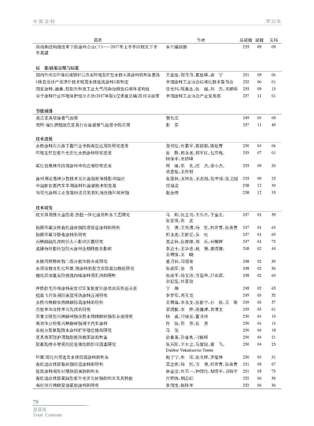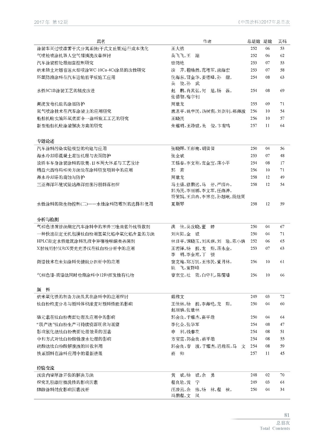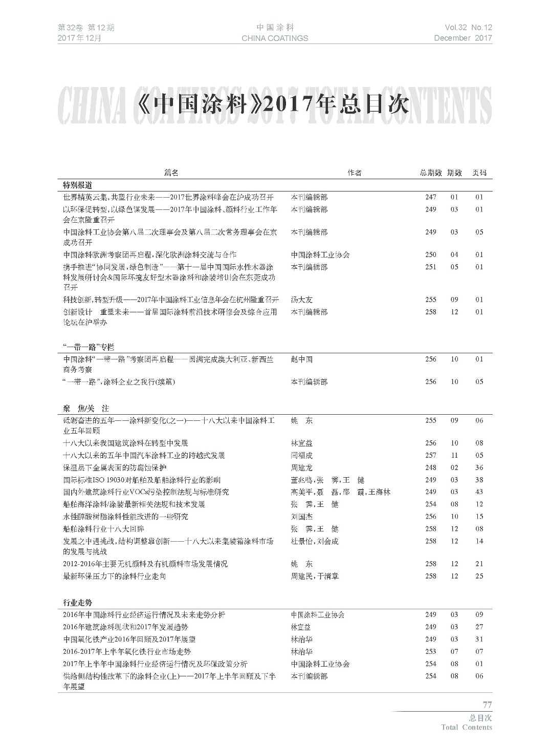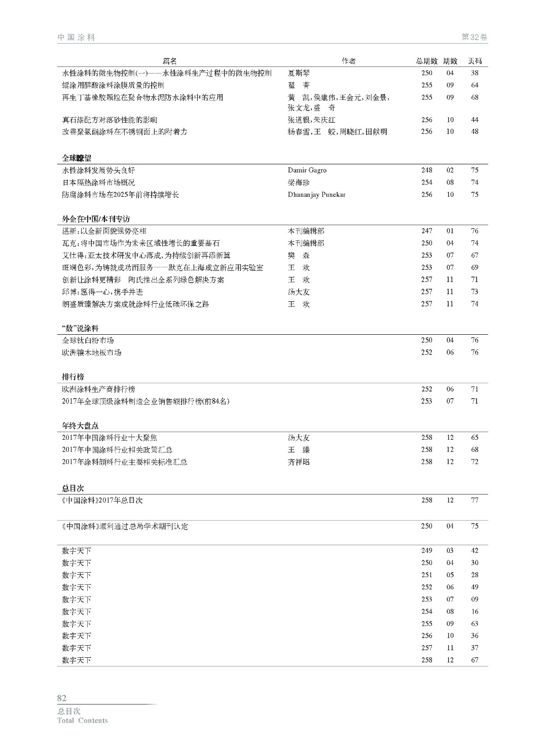 《中國涂料》2017年總目次