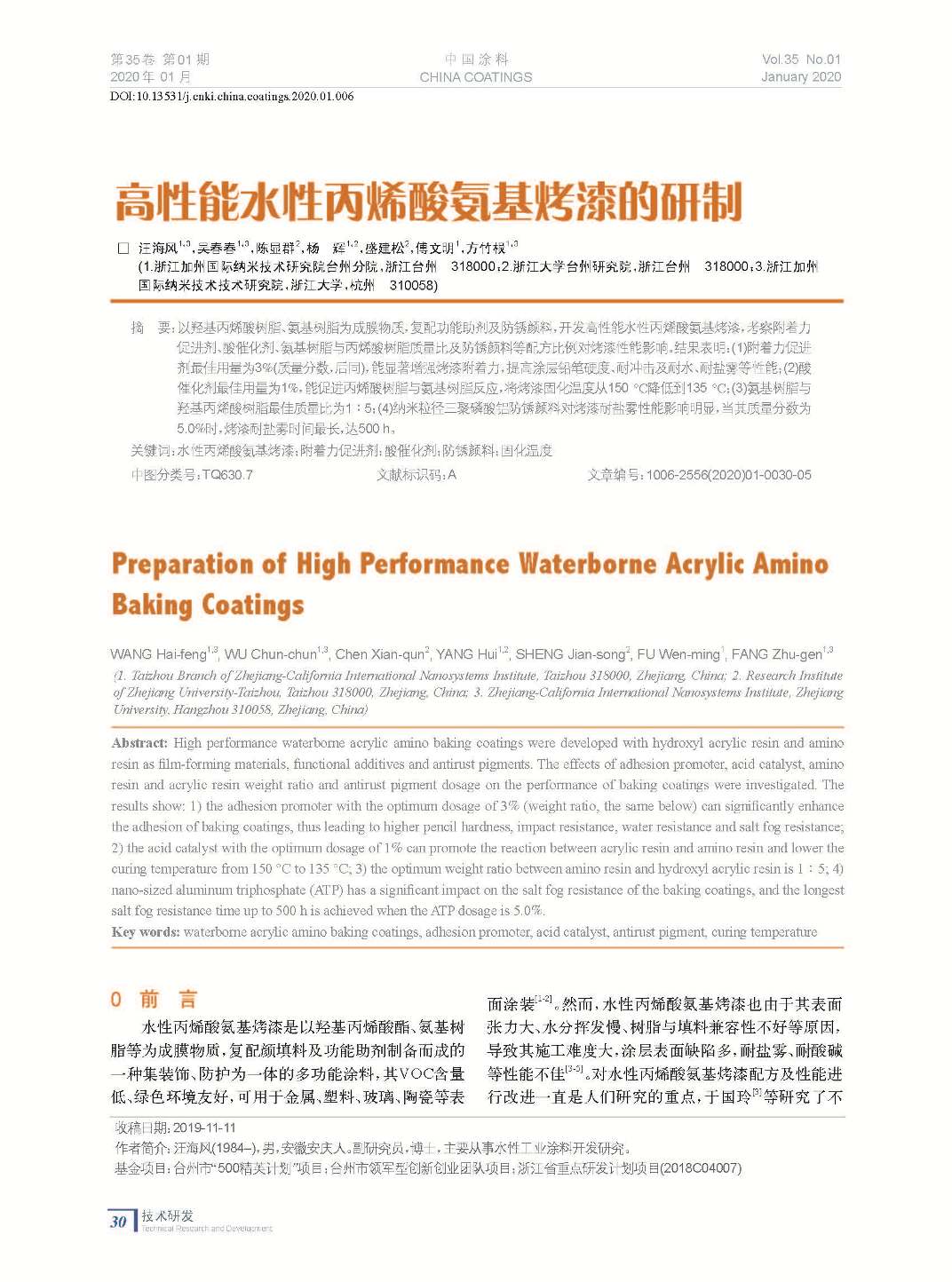 本文系作者@汪海風,吳春春,陳顯群,楊 輝,盛建松,傅文明,方竹根 授權中國涂料網發表,并經中國涂料網編輯,未經允許不得轉載,如需轉載請聯系chinacoatingnet@vip.163.com