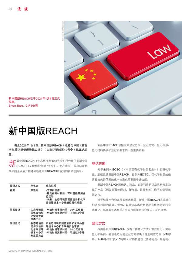 截止2021年1月1日,新中國版REACH已正式實施。