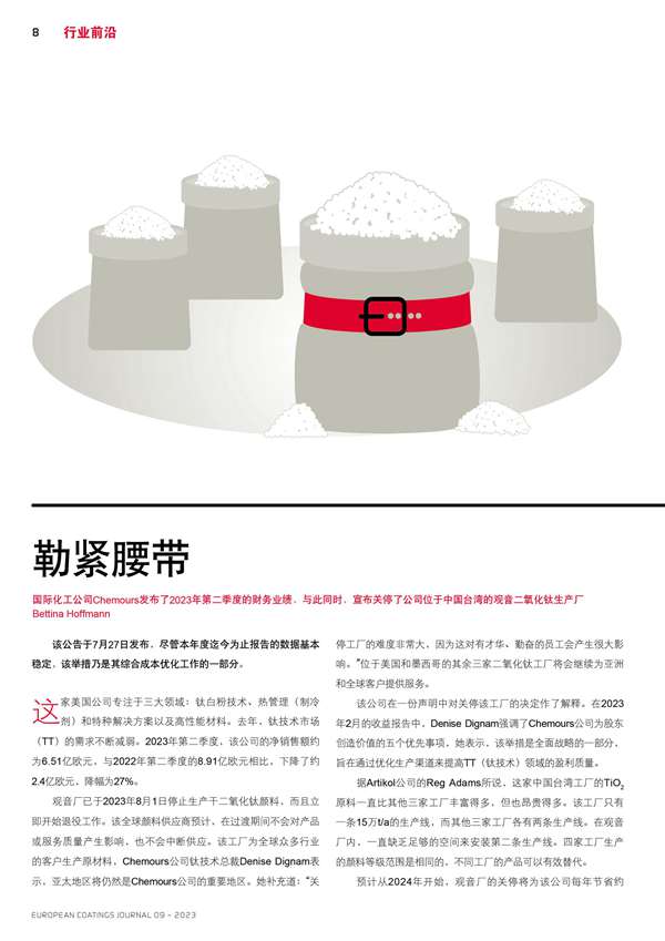 Chemours公司宣布關停了公司位于中國臺灣的觀音二氧化鈦生產(chǎn)廠