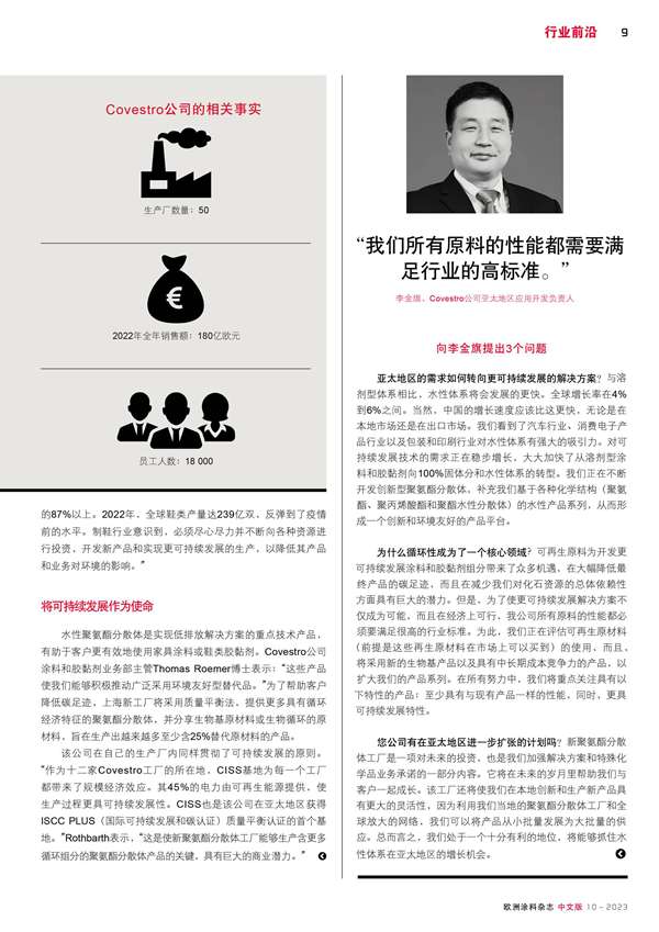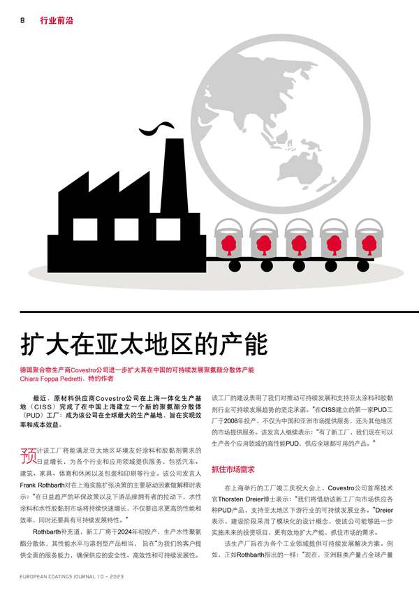 Covestro公司進(jìn)一步擴(kuò)大其在中國(guó)的聚氨酯分散體產(chǎn)能