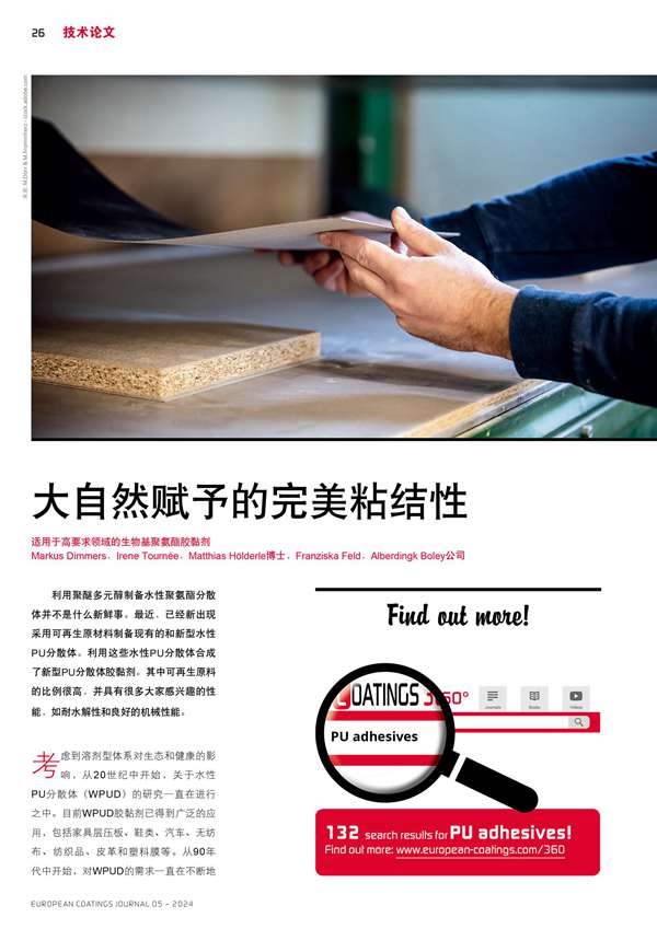 適用于高要求領域的生物基聚氨酯膠黏劑