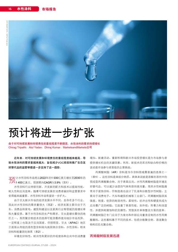 由于對可持續(xù)發(fā)展和環(huán)境責(zé)任的重視程度不斷提高,水性涂料的需求持續(xù)增長