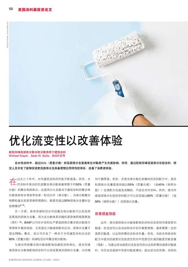 新型雙峰高固體分聚合物分散體用于建筑涂料