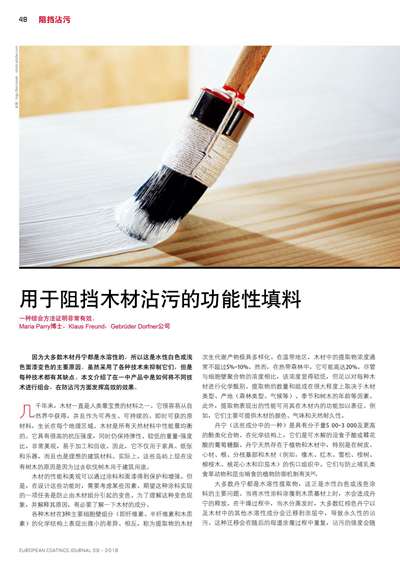 用于阻擋木材沾污的功能性填料