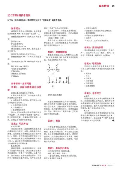2017年第9期參考答案:印刷油墨