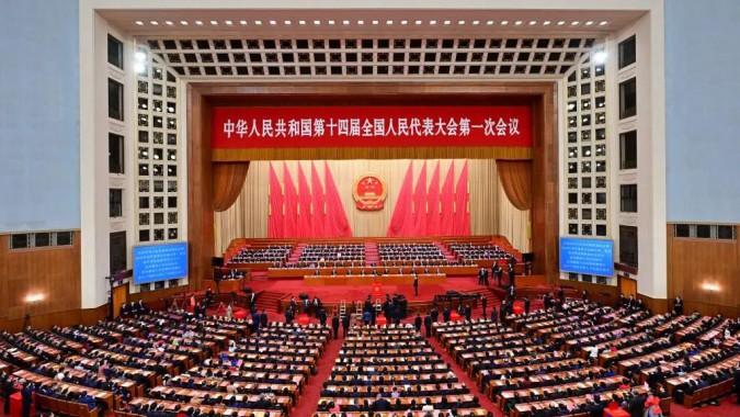 兩會|十四屆全國人大一次會議舉行第二次全體會議 習近平等在主席臺就座