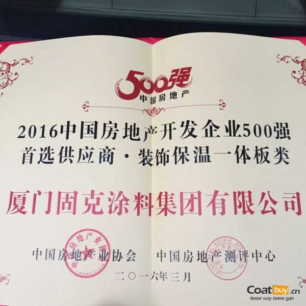 憑借在外墻涂裝領域的專業度、專注度及行業影響力,整個測評過程中,固克一路高歌猛進,天工石與固克漆輕松入圍并最終在“500強首選供應商品牌”評比中遙遙領先。連續幾年獲此殊榮,有力地印證了固克實力雄踞行業之首的事實,同時也將鞭策其繼續開拓進取,創新引領。