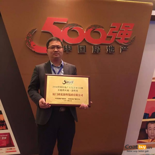 3月22日,“2016中國房地產500強測評成果”在京盛大發布。固克涂料集團旗下兩大品牌“天工石”、“固克漆”以不同凡響的品牌實力同步獲得500強開發商首選品牌供應商,其中“天工石”榮登裝飾保溫一體板類榜單前五強,固克漆再度蟬聯涂料類榜單前10強。固克涂料集團執行總經理林汶輝先生代表公司受邀出席本次盛會。