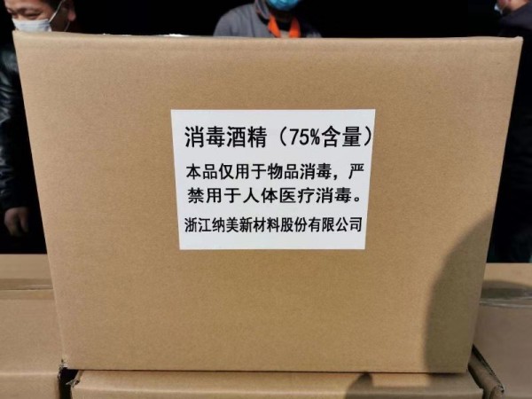 抗擊疫情期間,浙江納美新材料股份公司黨支部組織安吉黨員將公司實(shí)驗(yàn)室?guī)齑娴木凭♂尦?5%的消毒酒精,積極支援機(jī)關(guān)單位消毒抗疫。