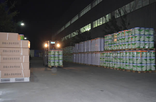 為保證產品及時供貨,晨陽水漆車間加緊生產,實行7X24小時不間斷運轉。夜晚,晨陽水漆車間燈火通明,廠區內提貨卡車接連不斷,裝貨叉車井然有序穿梭其間,以確保將產品及時送到客戶手中。