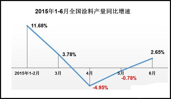 如今,涂料消費稅已實施半年,對全國涂料銷量的影響也正逐步顯現。據來自中商產業研究院及國家統計局的數據顯示,2015年1-6月,我國涂料生產總量為778.74萬噸,同比增長僅為1.42%。而在今年1-2月,全國涂料總產量同比增速達到11.68%,3月增速降至3.78%。4月份全國涂料生產總量出現了13個月來首次負增長,同比下滑4.95%。