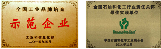公司是中國涂料行業十大創新企業、中國石油和化學工業聯合會“企業信用評價AAA級信用企業”、“企業文化建設先進單位”、國家工商總局 “守合同重信用”企業、全國安康杯競賽示范企業、全國工業品牌培育示范企業以及全國石油和化工行業責任關懷最佳實踐單位。