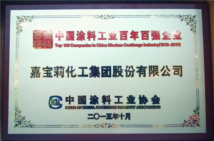 2015年10月20日,中國(guó)涂料工業(yè)協(xié)會(huì)為慶賀中國(guó)涂料工業(yè)迎來(lái)了百年華誕,暨協(xié)會(huì)成立30周年之際,在京隆重舉行了中國(guó)涂料工業(yè)百年頒獎(jiǎng)晚會(huì),嘉寶莉受邀出席并被授予四項(xiàng)殊榮。