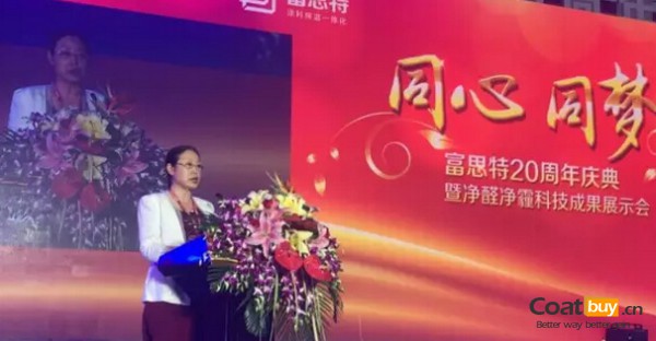 中國(guó)涂料工業(yè)協(xié)會(huì)會(huì)長(zhǎng)孫蓮英在致詞中指出:“20年來(lái),富思特在掌舵人郭祥恩董事長(zhǎng)帶領(lǐng)下,始終致力于中國(guó)建筑節(jié)能與環(huán)保事業(yè)的發(fā)展,富思特不僅憑借優(yōu)異的產(chǎn)品品質(zhì)與服務(wù)引領(lǐng)行業(yè)的發(fā)展,而且在涂裝技術(shù)的規(guī)范與進(jìn)步、涂裝工的技能培訓(xùn)、涂裝施工的現(xiàn)代化、機(jī)械化研究應(yīng)用等方面做出了突出的貢獻(xiàn)。”