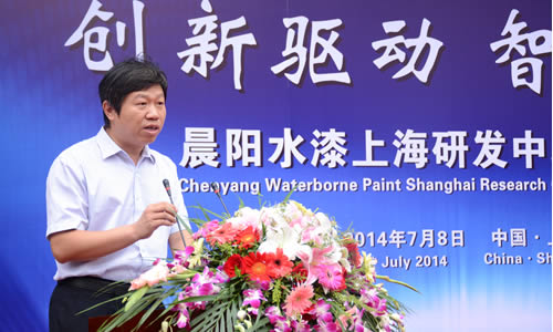 晨陽集團(tuán)副總裁花東栓在晨陽水漆上海研發(fā)中心揭牌儀式上講話