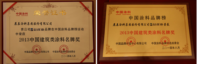 展辰涂料榮獲“2013中國建筑類涂料名牌獎(jiǎng)”