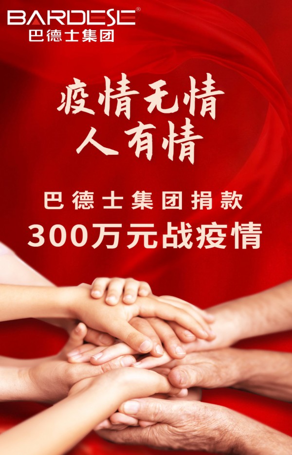 巴德士集團(tuán)捐款300萬(wàn)元戰(zhàn)疫情!7大全資子公司聯(lián)動(dòng)獻(xiàn)愛(ài)心,深情表達(dá)民族企業(yè)的責(zé)任與擔(dān)當(dāng)!