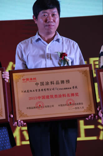 晨陽集團副總裁花東栓代表晨陽領取中國建筑類涂料名牌獎
