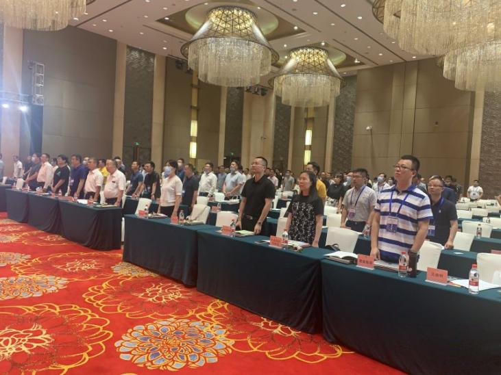 大會(huì)在莊嚴(yán)的國(guó)歌聲中正式拉開(kāi)序幕,全體與會(huì)人員起立,奏唱國(guó)歌。