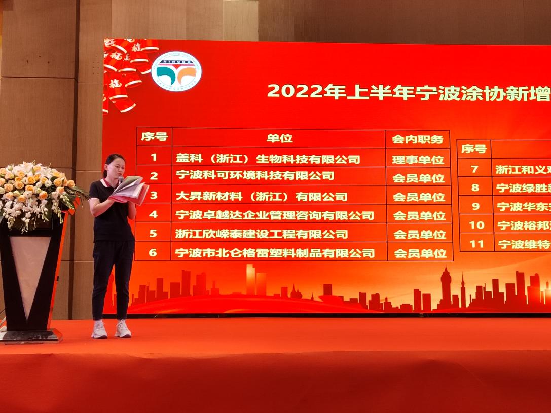 寧波涂協(xié)王銀璐副秘書長(zhǎng)向大會(huì)通報(bào)了《寧波涂協(xié)新增會(huì)員及會(huì)內(nèi)職務(wù)變動(dòng)情況說(shuō)明》。