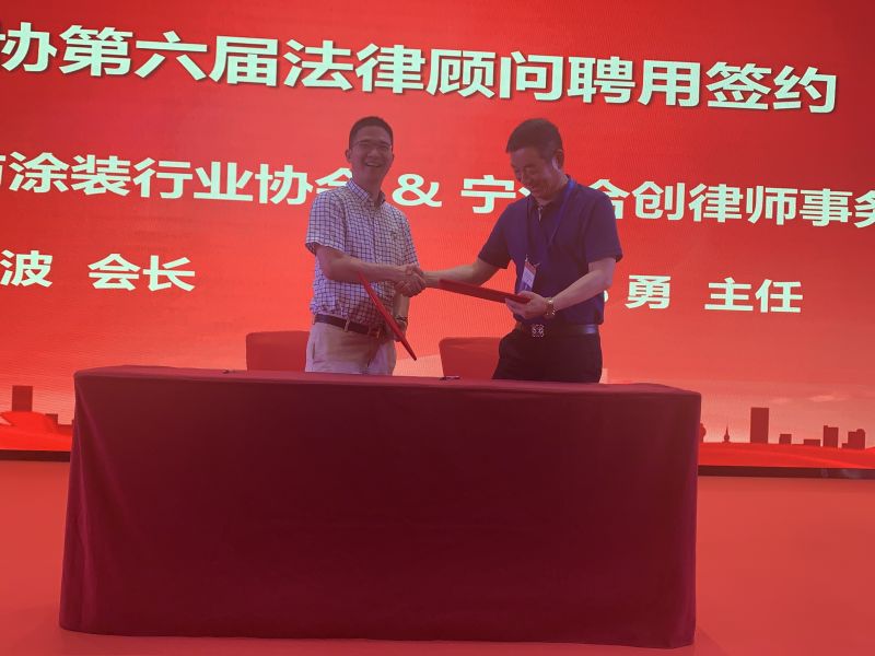 寧波涂協(xié)汪立波會(huì)長(zhǎng)與浙江合創(chuàng)律師事務(wù)所鄭勇主任進(jìn)行現(xiàn)場(chǎng)簽約
