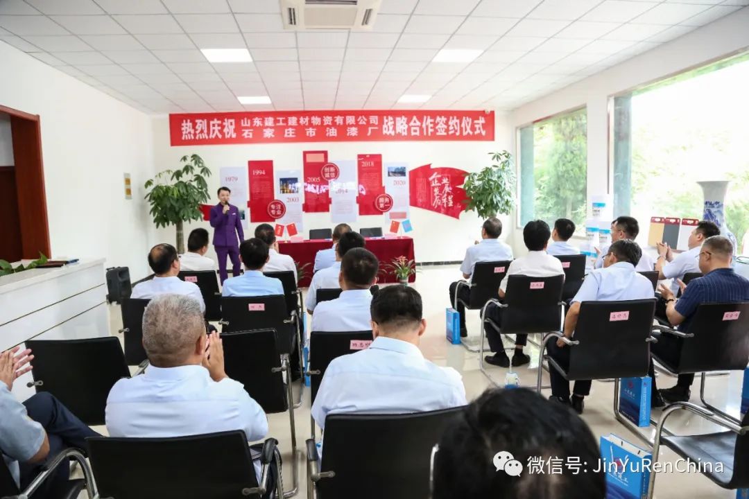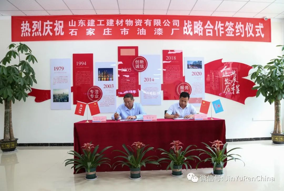 石家莊市油漆廠董事長焦亞平、山東建工建材物資有限公司董事長任俊生,代表雙方簽約。標(biāo)志著雙方合作正式邁出了關(guān)鍵一步。