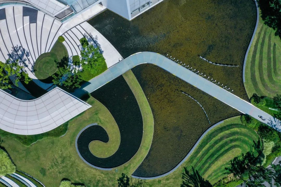 鳥(niǎo)瞰麗水大家·未來(lái)社區(qū)體驗(yàn)中心,斐波那契數(shù)列所呈現(xiàn)的“黃金螺旋曲線”,連通在城市街道與靈山景區(qū)之間,也鏈接著原生與未來(lái)之路。