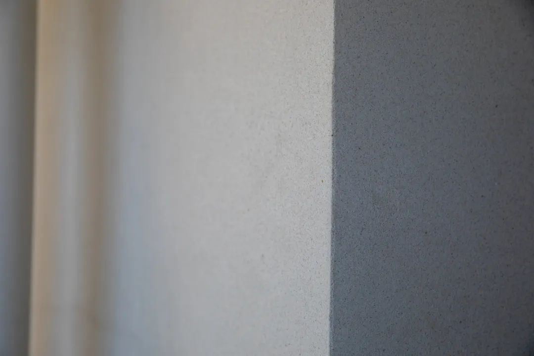 有別于以往的噴涂真石漆,麗水大家·未來(lái)社區(qū)外墻采用的這款傳化批刮仿石漆,對(duì)專(zhuān)業(yè)的施工技法有一定要求,但操作便捷、無(wú)需防護(hù),漆膜表面光滑平整致密,無(wú)接茬,用料?。缓笃趬γ娌灰讙旎?,耐沾污性能好。