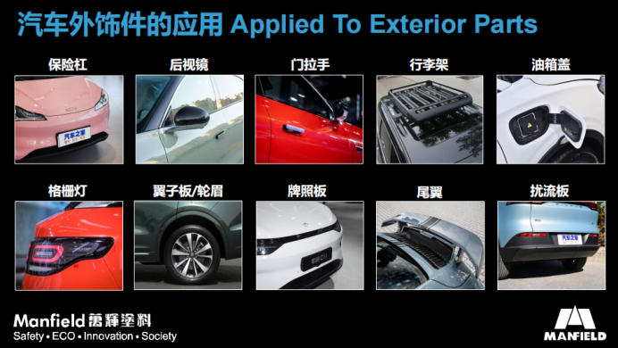 萬(wàn)輝汽車內(nèi)外飾涂料被廣泛應(yīng)用于納米BOX的前后保險(xiǎn)杠、尾翼、行李架、裝飾條等部件。