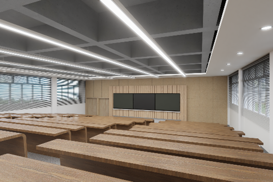 教室內部所使用的顏色是由科思創全球色彩與設計(CMF)團隊與清華大學藝術與科學中心色彩研究所共同提出的,體現了雙方共同致力于推進的“可持續設計”方式——將CMF美學設計融入科思創更具可持續性的聚碳酸酯材料中,推廣兼顧美學和循環的設計理念。