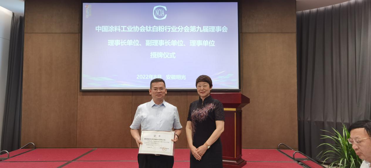 向中國涂料工業協會鈦白粉行業分會副理事長單位頒發證書