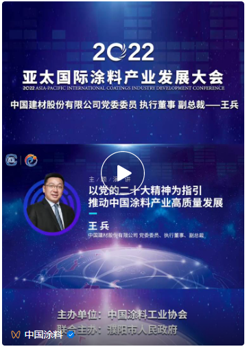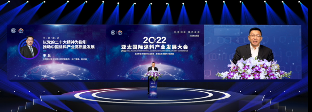 大會期間,中國建材股份有限公司黨委委員/執行董事/副總裁王兵帶來《以黨的二十大精神為指引推動中國涂料產業高質量發展》的精彩演講。他表示,2022亞太國際涂料產業發展大會召開的節點十分關鍵。