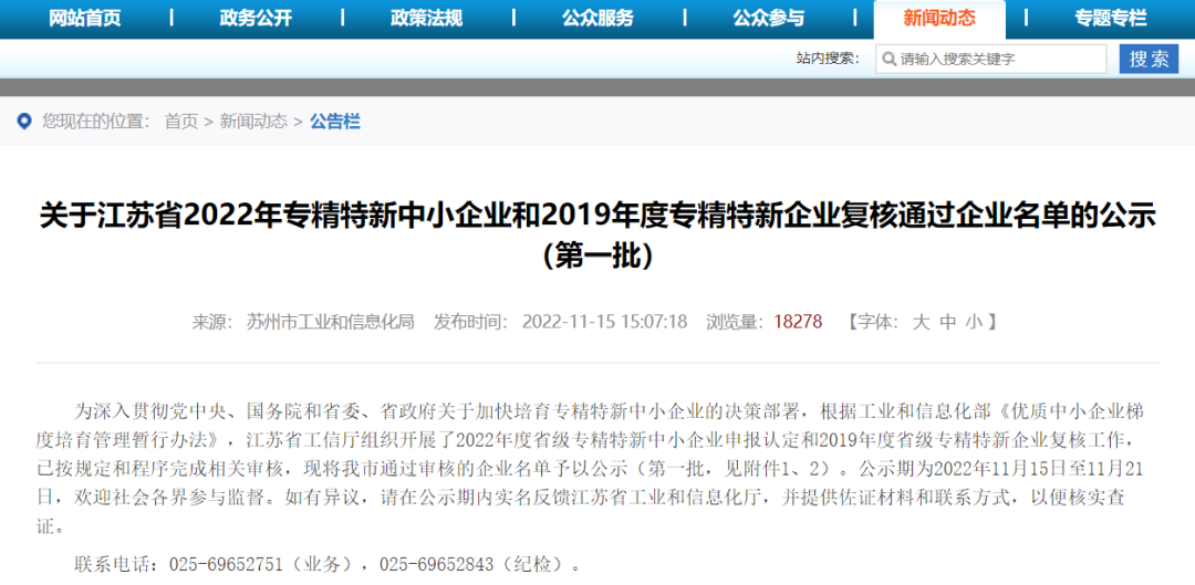 近日,江蘇省工信部公布江蘇省2022年專精特新中小企業和2019年度專精特新企業復核通過企業名單(第一批),信和新材料(蘇州)有限公司成功入選江蘇省工信廳批復的2022年度“專精特新”中小企業名單。