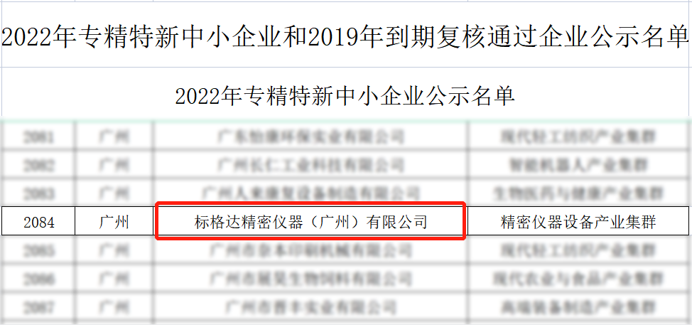 近日,廣東省工信廳組織開展了2022年度省級專精特新中小企業申報認定工作并對審核通過的企業予以公示,標格達精密儀器(廣州)有限公司成功入選“專精特新”中小企業名單!