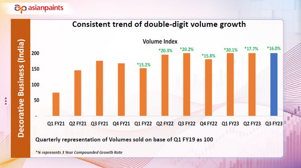 1月19日,印度涂料制造商亞洲涂料(Asian Paints)發布2023財年(2022年4月1日-2023年3月31日)Q3業績報告。
