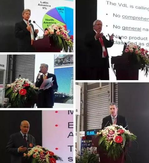 會中,Orr & Boss公司的Charles Bangert先生解讀了全球涂料市場發展現狀和趨勢,日本涂料協會的Hiroshi Hino先生介紹了保溫隔熱涂料技術及市場發展現狀,德國涂料協會的Michael Bross先生分享了歐洲涂料行業政策法規,德國涂料協會的Dietmar Eichstaedt先生帶來了“納米新材料在涂料中的應用”,美國涂料協會的James Andrew Doyle先生解讀了美國有關VOC的政策法規。