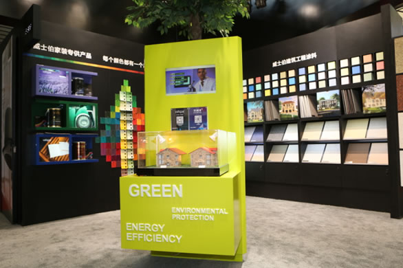 秉承著“關(guān)愛地球,重視可持續(xù)發(fā)展,堅持綠色環(huán)保”的理念,威士伯很早就開始了綠色節(jié)能涂料的研發(fā)和應(yīng)用。本次威士伯產(chǎn)品展區(qū)展出的擁有美國專利技術(shù)的綠能全效墻面漆系統(tǒng),是威士伯建筑涂料為促進綠色建筑發(fā)展而研發(fā)的提供一站式節(jié)能及色彩解決方案的高端產(chǎn)品體系。綠能體系特有的綠能硅球技術(shù)、高效反射技術(shù)和超親水界面等核心技術(shù),能很好控制墻體熱量的吸收和傳遞,有效改善室內(nèi)溫度及濕度,節(jié)省空調(diào)制冷能耗,打造出更自然舒適的室內(nèi)環(huán)境。此外,該體系還應(yīng)用了寬域視覺色彩技術(shù),采用了特殊紅外反射顏料,突破了傳統(tǒng)反射隔熱涂料只能在白色或淺色系下才具有較好反射隔熱效果的壁壘,令建筑物達到節(jié)能與色彩的平衡統(tǒng)一。目前,威士伯綠能全效墻面漆系統(tǒng),在改善城市生態(tài),構(gòu)筑人居和諧平衡等方面正發(fā)揮著積極的作用,因而受到了眾多地產(chǎn)商、建筑設(shè)計師以及施工單位的信賴。