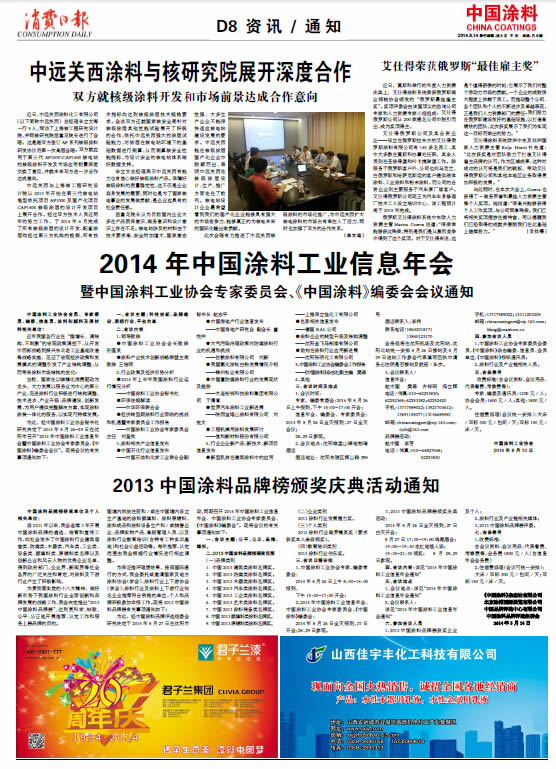 2014年中國涂料工業(yè)信息年會暨中國涂料工業(yè)協(xié)會專家委員會、《中國涂料》編委會會議通知