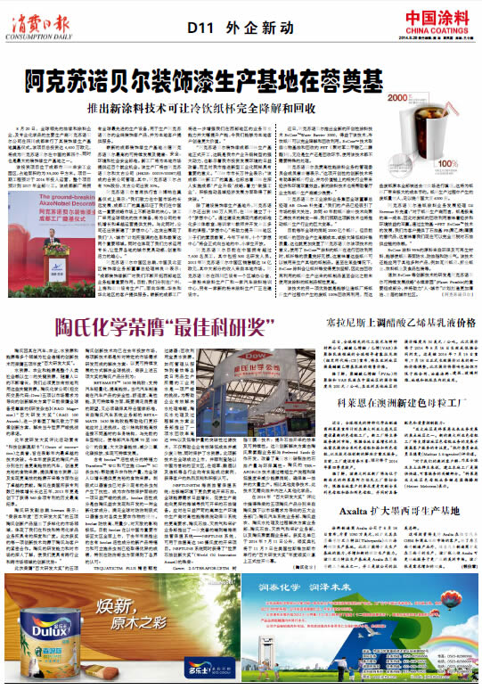 中國(guó)涂料報(bào) 2014年8月28日 星期四