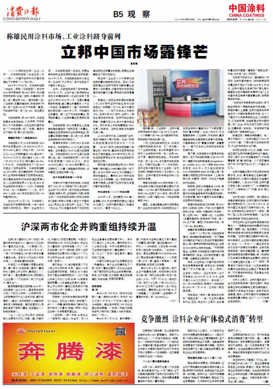 《中國涂料報》(電子版)的一切內(nèi)容(包括但不限于文字、圖片、PDF、圖表、標志、標識、商標、版面設計、專欄目錄與名稱、內(nèi)容分類標準以及為讀者提供的任何信息)僅供中國涂料信息網(wǎng)讀者閱讀、學習研究使用,未經(jīng)中國涂料雜志社有限公司及/或相關權利人書面授權,任何單位及個人不得將《中國涂料報》(電子版)所登載、發(fā)布的內(nèi)容用于商業(yè)性目的,包括但不限于轉載、復制、發(fā)行、制作光盤、數(shù)據(jù)庫、觸摸展示等行為方式,或將之在非本站所屬的服務器上作鏡像。否則,中國涂料雜志社有限公司將采取包括但不限于網(wǎng)上公示、向有關部門舉報、訴訟等一切合法手段,追究侵權者的法律責任。