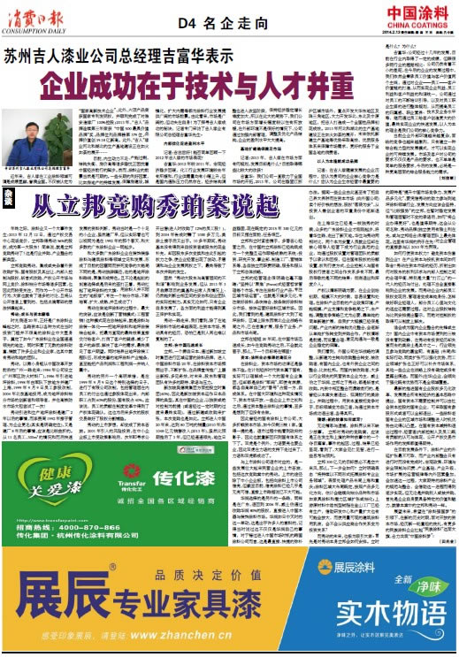 蘇州吉人漆業公司總經理吉富華表示企業成功在于技術與人才并重